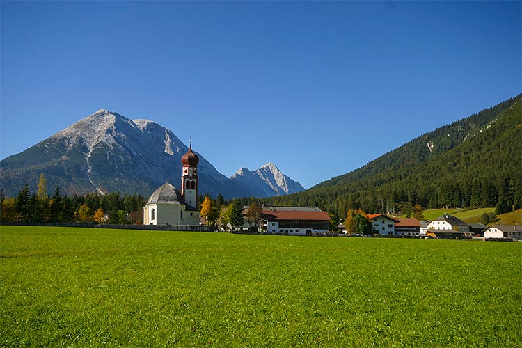 Leutasch gehört zur Olympiaregion Seefeld und liegt nur ein paar Kilometer von der bayerischen Grenze (bei Mittenwald) entfernt.